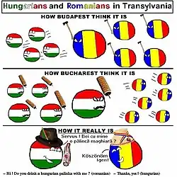 La proclamation par les Roumains de l'union de la Transylvanie à la Roumanie le , à l'issue de la Première Guerre mondiale, rencontre l'opposition de l'assemblée générale des Hongrois, tandis que certains députés Roumains et Saxons transylvains sont hésitants jusqu'à ce qu'un pouvoir bolchévik soit instauré par Béla Kun en Hongrie en 1919, tentant vainement de reprendre la Transylvanie, alors gouvernée de facto par le « Conseil national des Roumains de Transylvanie, Banat, Crișana et Maramureș » (Consiliul Dirigint), le gouvernement hongrois non-communiste d'Oszkár Jászi (en) et l'état-major du général roumain Alexandru Averescu[7],[8]. En 1920, au traité de Trianon, quelque 1 662 000 Hongrois transylvains deviennent de jure citoyens roumains, soit 32 % de la population de Transylvanie et 18% de celle de la « grande Roumanie ».