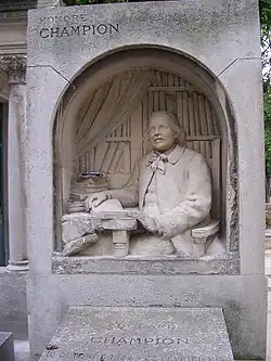 - ↑ Journal de Saint-Quentin, « C'était une figure parisienne… », dans Honoré Champion, 13 janvier 1846-8 avril 1913, Abbeville, Frédéric Paillart, , 77 p., portr. ; in-8º (OCLC 461671328, lire en ligne sur Gallica), p. 74.