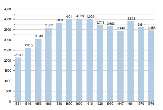 - Sources : INS, Rem. : 1831 jusqu'en 1970 = recensements, 1976 = nombre d'habitants au 31 décembre.