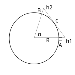 Détermination de la hauteur h du bord du cercle B à la droite tangente au cercle au point A.