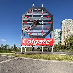 L'horloge est élevée en 1924, pour remplacer l'ancienne horloge, déplacée sur une nouvelle usine à proximité de Jeffersonville dans l'Indiana[1]. Lors de l'inauguration, le pôle publicité de Colgate dit qu'il s'agit de la plus grande horloge du monde[2].