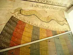 Les murs de l'escalier comportent plusieurs tables astronomiques :
