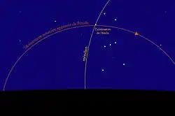 Au jour du 16 Thot donc, la première heure de la nuit, appelée commencement de la nuit, était déterminée par une étoile située juste à l'est du méridien, de même que la deuxième heure. La troisième heure, quant à elle, est représentée par une étoile culminant sur le méridien, et ainsi de suite.