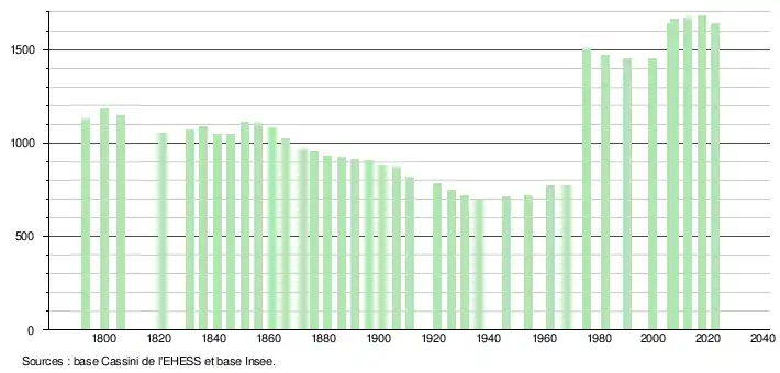 - ↑ Fiches Insee - Populations de référence de la commune pour les années 2006, 2007, 2008, 2009, 2010, 2011, 2012, 2013, 2014, 2015, 2016, 2017, 2018, 2019, 2020, 2021 et 2022.