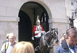 Ils sont également chargés de monter la garde devant l'entrée officielle des palais Saint James et de Buckingham ainsi que devant le bâtiment des Horse Guards. Ce dernier était à l'origine situé aux portes du palais de Whitehall, résidence des monarques jusqu'à son incendie en 1698. Si les rois ont déménagé, les Horse-Guards y ont conservé leurs quartiers et chaque jour, à 11 heures 30 du matin, la relève de la garde consiste au changement de régiment en faction à Whitehall.
