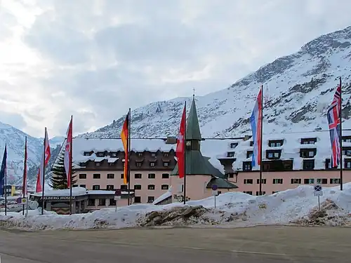- ↑ Histoire de l'hôtel Arlberg Hospiz Hotel, sur le site de l'hospice.