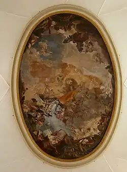 Fresque Apollon dirigeant un chœur de jeunes filles (1776-1777) de Jacopo Guarana (détail de la partition Antigono de Pasquale Anfossi) dans l'Ospedale di Santa Maria dei Derelitti.