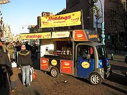 - hot-dog européen : saucisse européenne servie dans du pain baguette, avec de la choucroute ;