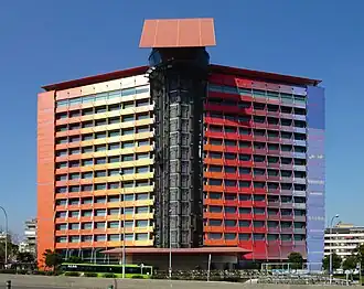 Hôtel du groupe des Hoteles Silken (es), il a la particularité d'avoir était conçu par plusieurs cabinets d'architectes ou de design[1], chacun s'occupant globalement d'un étage[2], à l'exemple de ceux de Norman Foster, Zaha Hadid, Ron Arad et Arata Isozaki. L'extérieur a été conçu par Jean Nouvel[3].