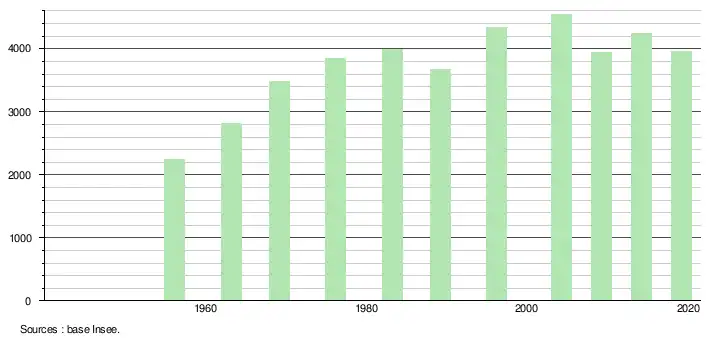 En 2019, la commune comptait 3 955 habitants[Note 1], en diminution de 6,72 % par rapport à 2014 (Nouvelle-Calédonie : +0,98 %).