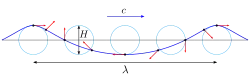 - ↑ D’après H. Bouasse, Houles, rides, sèches et marées, Librairie Delagrave, , « 1. Houle progressive », p. 26-27