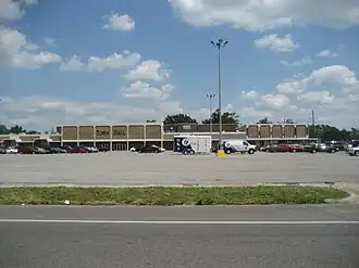 Vue du bayou Terrebonne traversant la ville de Houma depuis le pont de la rue Gabasse.- Le bayou Terrebonne canalisé entre deux voies rapides dans le centre-ville de Houma.
