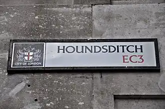 Houndsditch est une rue de la cité de Londres qui traverse des parties des quartiers de Portsoken (en) et de Bishopsgate Without.