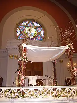 La houppa traditionnelle, particulièrement pour les juifs orthodoxes, doit être tendue sous le ciel, sans intermédiaire. Comme la cérémonie de mariage se tient parfois à l’intérieur, certaines synagogues ont une ouverture pratiquée dans le toit, afin que la houppa se trouve directement sous le ciel. De nombreux juifs hassidiques préfèrent que la cérémonie ait entièrement lieu à l’extérieur.