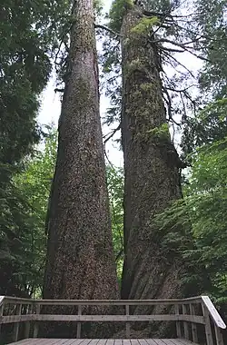 - le volume foliaire et l'accroissement en longueur de la tige (positivement ou négativement pondéré à volume foliaire égal par la situation plus ou moins concurrentielle de l'arbre)[9]. Une idée reçue veut que le système racinaire est limité à l'espace défini par la projection au sol du houppier mais certaines racines horizontales s'étendent jusqu'à des longueurs égales à trois fois la hauteur de l'arbre[10] ;
