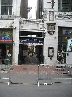La première House of Blues ouvre ses portes le dans le quartier commercial de Harvard Square à Cambridge, dans le Massachusetts, en tant que salle de concert et restaurant[3]. La société est financée par Dan Aykroyd, Aerosmith, Paul Shaffer, River Phoenix, Jim Belushi et l'université Harvard, entre autres[4]. Cet établissement ferme ses portes en 2003, la société cherchant un lieu plus grand à Boston[5]. Cependant, l'entrée en béton où les membres des Blues Brothers et d'autres ont laissé leur marque est toujours là. Aykroyd est toujours associé à la marque et assiste à la plupart des ouvertures, se produisant en tant que moitié des Blues Brothers[6].