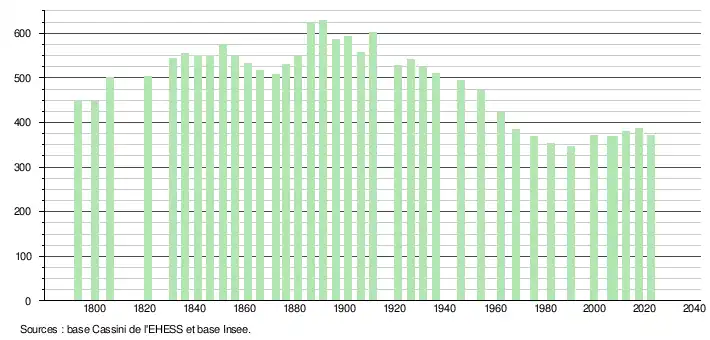 - ↑ Population municipale de référence en vigueur au 1er janvier 2025, millésimée 2022, définie dans les limites territoriales en vigueur au 1er janvier 2024, date de référence statistique : 1er janvier 2022.