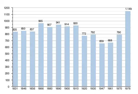- Sources : INS, Rem. : 1831 jusqu'en 1970 = recensements, 1976 = nombre d'habitants au 31 décembre.
