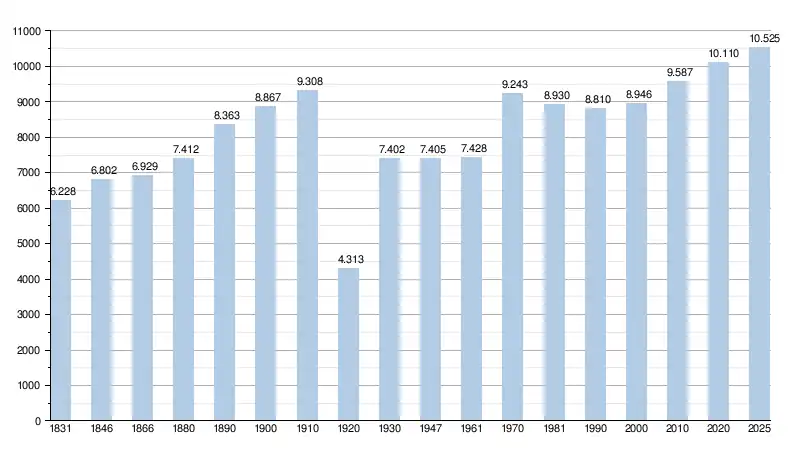 - Source : DGS - Remarque: 1806 jusqu'à 1981=recensement; depuis 1990=nombre d'habitants chaque 1er janvier[5]