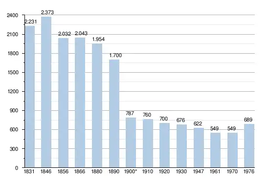 - Sources : INS, Rem. : 1831 jusqu'en 1970 = recensements, 1976 = nombre d'habitants au 31 décembre.