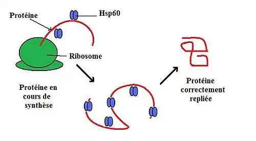 - ↑ Cheng, MY; Hartl, FU; Horwich, AL. The mitochondrial chaperonin Hsp60 is required for its own assembly. Nature 348: 455- 458; 1990.