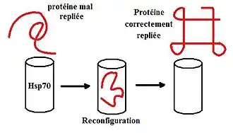 - ↑ (en) Morano KA, « New tricks for an old dog: the evolving world of Hsp70 », Ann. N. Y. Acad. Sci., vol. 1113, , p. 1–14 (PMID 17513460, DOI 10.1196/annals.1391.018)