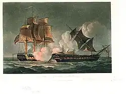 Cooke réserve son feu et manœuvre dans une position de ratissage avant de livrer une bordée dans la poupe de Forte. Dans les dégâts, la confusion et la fumée causés par l'incendie de la Sybille, la Forte commence à tirer par erreur sa batterie de tribord sur l'une de ses propres prises, laissant la Sybille libre de venir et de livrer une deuxième bordée de ratissage de son autre batterie. Les deux frégates commence alors à échanger des bordées à bout portant, blessant mortellement Cooke à 1 h 30 ; dix minutes plus tard, Beaulieu-Leloup est tué par un boulet de canon.