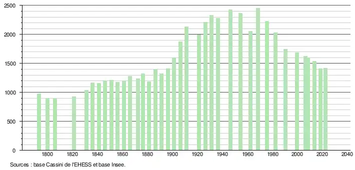 - ↑ Fiches Insee - Populations de référence de la commune pour les années 2006, 2007, 2008, 2009, 2010, 2011, 2012, 2013, 2014, 2015, 2016, 2017, 2018, 2019, 2020, 2021 et 2022.