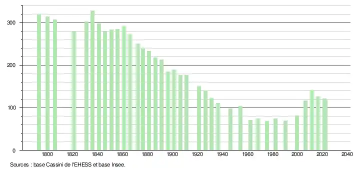 - ↑ Fiches Insee - Populations de référence de la commune pour les années 2006, 2007, 2008, 2009, 2010, 2011, 2012, 2013, 2014, 2015, 2016, 2017, 2018, 2019, 2020, 2021 et 2022.