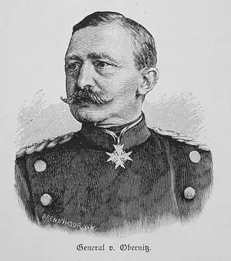 Il sert comme commandant de la division de campagne du Wurtemberg pendant la guerre franco-prussienne de 1870/71 dans les batailles de Wörth et dans le 2e corps d'armée sous les ordres du général Eduard von Fransecky lors du siège de Paris. Obernitz reçoit pour ces mérites une dotation de 100 000 thalers. Le 22 octobre 1871, il devient commandant de la 14e division d'infanterie à Düsseldorf. Le 11 juin 1879, il est nommé général commandant du 14e corps d'armée à Karlsruhe, qu'il occupera jusqu'à sa retraite en août 1888. Entre-temps, Obernitz est promu général d'infanterie le 11 juin 1879 et nommé chef du 4e régiment de grenadiers. Le 18 août 1886, il fêta ses cinquante ans de service.