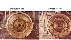 Principe : le banc d'essai se compose d'un vrai palier de moteur tournant à 10 000 tr/min et soumis à une charge radiale, sur lequel l'huile est projetée. Le palier est chauffé électriquement à 260 °C. On injecte un débit d'air et la température de l'huile est régulée. La durée de l'essai varie de 48 à 200 h selon le type d'huile. À la fin de l'essai, l'huile est analysée et l'on mesure, notamment, les variations de viscosité et d'acidité par rapport à l'huile neuve et la consommation d'huile. Le banc est démonté et les différentes pièces sont cotées en appréciant la surface recouverte de dépôts et la nature de ce dépôt, la cotation étant affectée d'un coefficient suivant la pièce. Après addition des cotations partielles, on obtient un chiffre global, appelé « démérite » (total demerit rating). Plus ce démérite est petit, plus les pièces en contact avec l'huile sont propres, plus l'huile a une meilleure tenue à la cokéfaction. À titre d'illustration, l'aspect du palier après essais de deux huiles aux démérites différents est présenté[53].