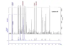 - ↑ Florence Mehl, Guillaume Marti, Julien Boccard et Benjamin Debrus, « Differentiation of lemon essential oil based on volatile and non-volatile fractions with various analytical techniques: a metabolomic approach », Food Chemistry, vol. 143, , p. 325–335 (ISSN 0308-8146, DOI 10.1016/j.foodchem.2013.07.125, lire en ligne, consulté le )
