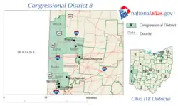 Le 8e district congressionnel de l'Ohio se trouve du côté ouest de l'Ohio, à la frontière de l'Indiana. Les villes de Hamilton, Fairfield, Middletown, Springfield, Eaton, Greenville, Piqua et Troy font partie du district. Le district était représenté par le Républicain John Boehner, 53e Speaker de la Chambre des Représentants des États-Unis. Le 25 septembre 2015, Boehner a annoncé sa démission de la présidence et sa retraite du Congrès, qui est entrée en vigueur le 31 octobre 2015[1].