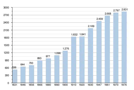 - Sources : INS, Rem. : 1831 jusqu'en 1970 = recensements, 1976 = nombre d'habitants au 31 décembre[2].