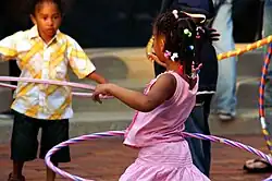 Le hula hoop[1], aussi écrit hula-hoop ou houla-hop[2], est un jeu consistant à faire tourner un cerceau, principalement autour de la taille, par un déhanchement rythmé.