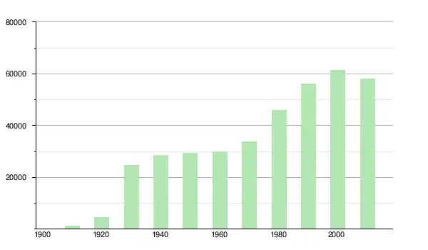 | 1980 | 45 932 | ▲ +36,12 % | |