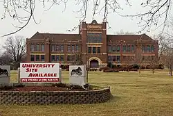 - ↑ (en) Dirk Lammers, « NEW: Huron University bids adieu as auction begins », sur rapidcityjournal.com, (consulté le ).