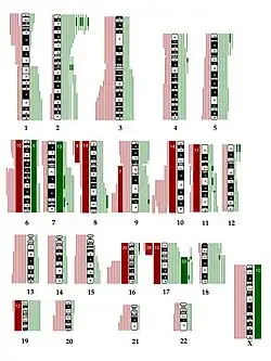 - En recherche et en clinique, pour l'étude et le diagnostic des cancers, de malformations congénitales, des retards mentaux, etc. Voir en particulier les articles sur les modifications chromosomiques pour des exemples de pathologies présentant des modifications dans la structure des chromosomes : Duplication (génétique), Cassure chromosomique.