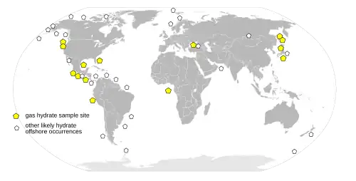 - ↑ (en) Offshore Gas Hydrate Sample Database with an Overview and Preliminary Analysis, United States Geological Survey, Coastal and Marine Geology Program, , 31 p. (lire en ligne [PDF]), p. 23, figure 2.