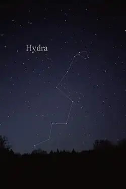 L'Hydre (parfois nommée « Hydre femelle » pour éviter la confusion avec l'Hydre mâle) est la plus vaste et la plus longue des 88 constellations, s'étendant sur plus de 1 300 degrés carrés. La tête de l'Hydre se trouve au sud du Cancer et son corps sinueux s'étend jusqu'à la Balance. Malgré sa taille, elle ne contient que deux étoiles réellement brillantes.