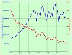 La puissance installée totale du pays est passée de 56 GW en 1970 à plus de 95 GW en 2008. En 1940, les États-Unis comptaient 3 100 centrales hydroélectriques, mais ce nombre avait chuté à 1 425 centrales en 1980 ; depuis lors, nombre de ces centrales ont été restaurées, portant le décompte à 2 378 centrales en 2008, hors pompage-turbinage[1].