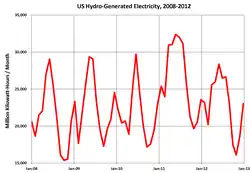 - ↑ (en) California drought leads to less hydropower, increased natural gas generation, EIA, 3 octobre 2014