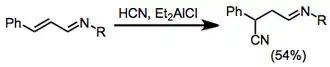 - RCH=CH2 + HCN ⟶ RCH2–CH2–C≡N.