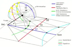 - ↑ Du moins cela est vrai pour tous les cadrans horizontaux situés entre les cercles polaires et tous les cadrans verticaux situés au-delà des tropiques.