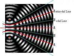 - dans les interférences produites par deux sources d'ondulations de même fréquence