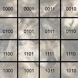 Une des opérations les plus courantes en traitement d'image consiste à utiliser un filtre linéaire, c'est-à-dire à appliquer une matrice de convolution. Pour bénéficier de l'architecture en hypercube, l'image doit être divisée en zones égales, et chaque zone assignée à un processeur. Mudge et Abdel-Rahman ont suggéré de considérer l'image comme étant une table de Karnaugh utilisant le code de Gray[D 13], ainsi que sur l'exemple ci-contre : si on considère une zone de l'image et ses coordonnées dans la table, alors on obtient directement le processeur auquel l'assigner. Par ailleurs, l'utilisation du code de Gray conserve l'adjacence : deux zones adjacentes dans l'image seront placées sur deux processeurs adjacents, sauf pour les coins. Le filtre, tel que celui de Sobel, est appliqué par chaque processeur à la zone qui lui est assignée. Si le filtre a besoin de certains pixels dépassant la zone disponible à un processeur, il peut la demander au processeur voisin en utilisant les propriétés d'adjacence ; pour des coûts plus faibles en communication, chaque processeur peut également avoir une zone de l'image dont la taille correspond à celle nécessaire pour le traitement plutôt qu'à une partition stricte.
