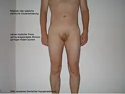 - Chez l'homme : atrophie musculaire, baisse de la force musculaire, baisse de libido, micropénis, dysfonction érectile, gynécomastie, irritabilité, dépression, troubles du sommeil.