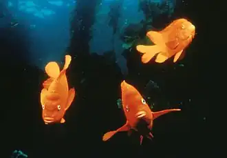 C'est un poisson orangé qui vit sur les fonds rocheux et les crevasses, ainsi que dans les forêts de kelp Macrocystis pyrifera. Il se nourrit de petits invertébrés, comme les bryozoaires encroutés sur les feuilles des laminaires géantes.
