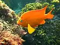 Hypsypops rubicundus, couramment appelé Demoiselle Garibaldi, est une espèce de poissons de la famille des Pomacentridae.