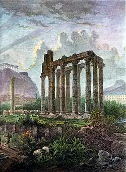 - 174 av. J.-C. : reprise des travaux de l’Olympieion d’Athènes grâce aux subsides fournis par Antiochos IV[9]. L’ordre corinthien est adopté pour la première fois dans un grand temple. Mais le chantier sera à nouveau interrompu et le temple colossal ne sera terminé que sous Hadrien.